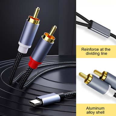 USB-C till 2x RCA ljudadapter som säkerställer att stereoljud överförs utan fördröjning eller signalförlust. Koppla enkelt mobil, surfplatta eller MP3-spelare till en högtalare, stereoanläggning eller annan RCA-aktiverad enhet med den här adapterkabeln.