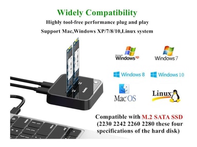 Denna hårddisks-dockningsstation B+M Key M.2 SATA 2242 2260 2280 22110 SSD, stöder 2st M.2 SATA hårddiskar (läser och skriver samtidigt).