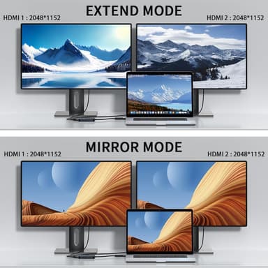 Denna kompakta och kraftfulla DisplayLink dockningsstationen från NÖRDIC gör det möjligt att ansluta två HDMI-skärmar till din dator via endast en USB-C- eller USB-A-port. Perfekt för dig som vill utöka arbetsytan och öka produktiviteten.