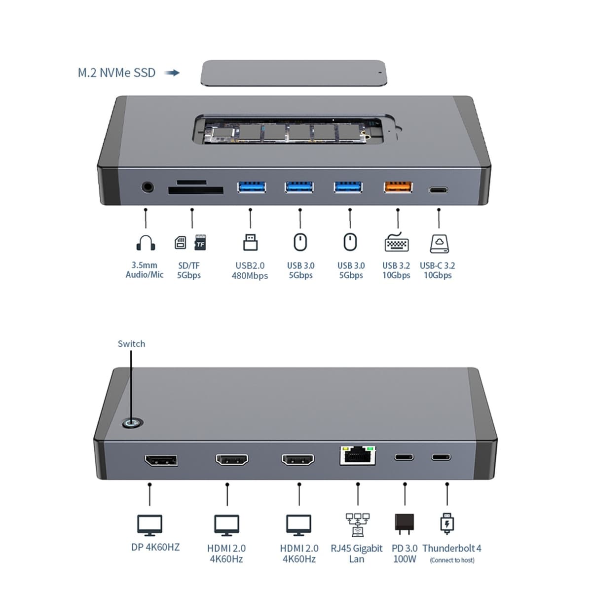 Input: 1× USB-C (Thunderbolt 4, till host)