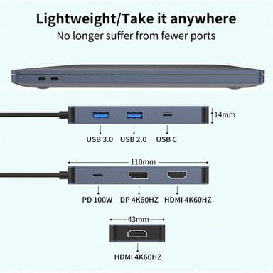NÖRDIC USB-C 1 till 7 Dockningsstation är den perfekta lösningen för att utöka din bild- och dataanslutning via en enda USB-C-port. Med stöd för tre bildskärmsutgångar – dubbla HDMI och en DisplayPort – får du maximal flexibilitet för arbete, spel och multitasking. Den levererar 100W Power Delivery, snabba dataöverföringar och ett elegant aluminiumhölje som passar både kontor och resa.