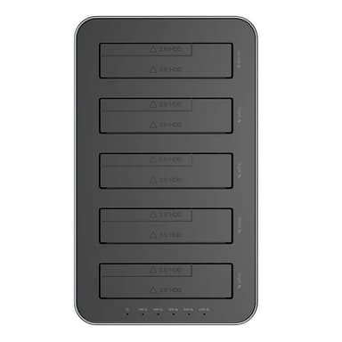 Orico dockningsstation stöder samtidig anslutning av så många som fem enheter, vilket översätts till en enorm kapacitet på upp till 110 TB. Med dataöverföringshastigheter på upp till 200 MB/s för snabb filkopiering och läsning är den idealisk för att hantera stora databaser, videoprojekt och andra krävande applikationer. Stöd för USB 3.2 Gen1-, UASP- och TRIM-protokoll förbättrar diskarnas effektivitet ytterligare, vilket säkerställer en stabil anslutning och optimal användning av lagringsutrymme.