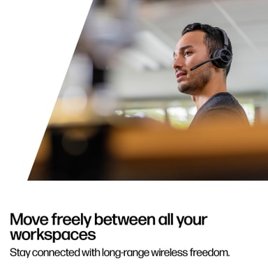 Hörs tydligt med hjälp av HP Poly Voyager 4320 MS Teams headset USB-A-kabel med laddningsstativ. Headsetet erbjuder en trådlös anslutning tack vare Bluetooth och en medföljande USB-adapter, medan mikrofonen har Acoustic Fence-teknik som tar bort bakgrundsljud. Den långa batteritiden gör att du kan slutföra alla dina samtal utan att behöva ladda. Dessutom finns inbyggda volym- och samtalskontroller för snabb och enkel användning.