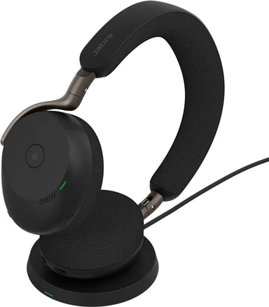 Jabra Evolve2 75 Link390c MS WLC, trådlöst headset, erbjuder AI-driven ClearVoice, avancerad ANC och smidig AI-assistentintegration, vilket ger kristallklara samtal och upp till 110 timmars musik i en lätt on-ear-design.Läs mer om produkten
