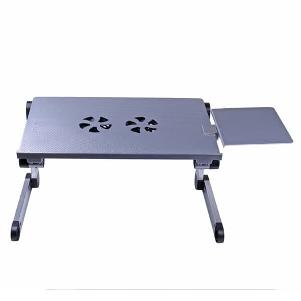 Laptopställ / laptopbord med justerbara ben. Bordet underlättar användning av en bärbar dator på kontoret, hemma eller på resande fot, och skyddar mot brännskador, som blir allt vanligare hos personer som håller datorn i knät medan du arbetar. Nu ingår även extra monterbart bord för datormus. Smart ventilationsöppning på bordet gör att datorn inte kan överhetta.