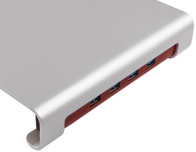 Desire2 hållare för skärm med USB hub kommer med en portabel design och ergonomisk justerbarhet så du kan njuta av multimedia utan besvär. Hållaren är utrustad med silikon för att förhindra att din bärbara dator eller skärm glider av hållaren. Smarta urfräsningar ger dig bra luftflöde till din enhet medan den står i hållaren. Tillverkad av hållbar aluminium och tål en vikt på max 14 kg.