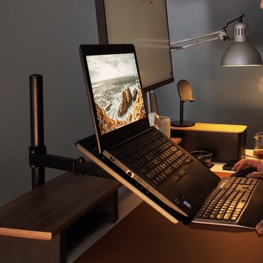 NÖRDIC Hållare för bärbara datorer skrivbordsfäste ger dig en mer ergonomisk användarupplevelse med din bärbara dator. Stativet kan vinklas, roteras och justeras i höjd och installeras enkelt med hjälp av ett klämfäste. Passar skrivbordskivor med maximal tjocklek på 10cm.Specifikationer: