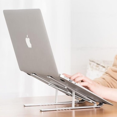 Tech-Protect bärbar stativ ger större arbetskomfort och förbättrar kylningen av enheten. Tillbehöret har en lätt aluminiumstruktur som kan vikas och justeras. Det låter dig höja enheten i olika vinklar, vilket leder till förbättrad ergonomi och bibehålla en hälsosam position medan du arbetar på en bärbar dator.