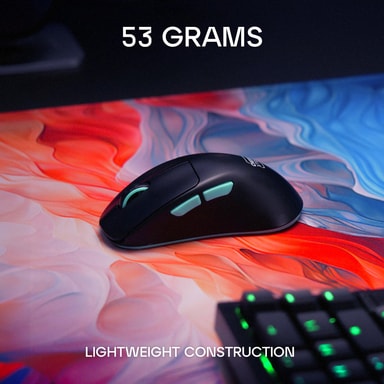 Denna mus har en ergonomisk form som är skräddarsydd för spelprestanda och komfort. Dess ultralåga botten minskar belastningen på handleden medan förbättrat grepp säkerställer exakt kontroll och förhindrar glidning. Den justerbara sidokurvaturen tillåter användare att anpassa passformen till deras handstorlek och grepp. Dessutom kan du också njuta av den övre lätta vikten på 53 gram - du kommer inte ens känna att den finns där.