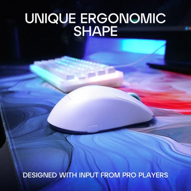 Denna mus har en ergonomisk form som är skräddarsydd för spelprestanda och komfort. Dess ultralåga botten minskar belastningen på handleden medan förbättrat grepp säkerställer exakt kontroll och förhindrar glidning. Den justerbara sidokurvaturen tillåter användare att anpassa passformen till sin handstorlek och grepp. Dessutom kan du också njuta av den övre lätta vikten på 53 gram - du kommer inte ens känna att den finns där.