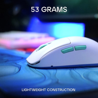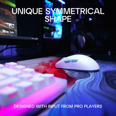 Denna mus är designad med unik symmetrisk form och ultralåg front, vilket ger ett optimalt grepp för alla användare. Den förnyade knappdesignen, med låg knapphöjd förstärkt av komfortspår, säkerställer en smidig och bekväm klickupplevelse. Den här lätta musen väger bara 53 gram och är perfekt för alla spel.