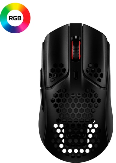 HyperX Pulsefire Haste Wireless gamingmus är ett lätt vapen som blir ett tillägg till ditt arsenal och vänder varje strid. Den kommer utrustad med justerbar 16000 DPI och även 6 programmerbara knappar för dina dödliga kombos. Hex-designen och honeycomb-skalet ger en lätt vikt på endast 62 gram och musen har även utmärkt hållbarhet på upp till 100 timmars trådlös batteritid via 2.4 GHz-anslutningen.