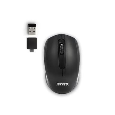 Paketinnehåll: 1 x trådlös mus 1 x trådlös USB -mottagare 1 x USB-A till USB-C-omvandlare 2 x AA -musbatteri