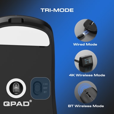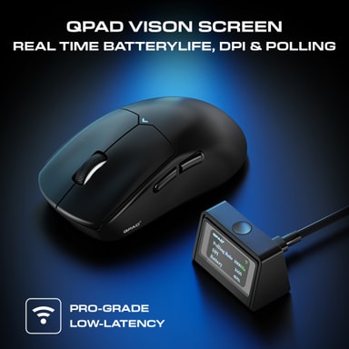 QPAD Mark Model 5R Vision trådlösa mus erbjuder en ambidextriös design med justerbar DPI upp till 26 000 DPI, en PAW 3395-sensor, tre anslutningslägen, 4000 Hz uppdateringsfrekvens och en Vision-skärm för realtidsvisning av olika inställningar.Läs mer om produkten