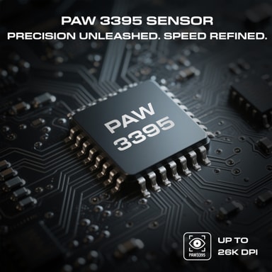 PAW 3395 optiska sensorn stödjer en hög DPI på upp till 26 000, vilket möjliggör exakt kontroll och anpassningsförmåga till olika gamingsituationer. Denna sensor säkerställer en 4K-pollningsfrekvens för hög respons, låg latens och exakta musrörelser, vilket ger en konkurrensfördel i snabba spel.
