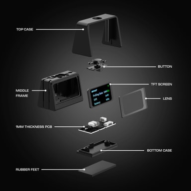- Vision-skärmen är en liten skärm som visar olika inställningar som DPI-nivå, batteristatus, belysningsförinställningar och annat.