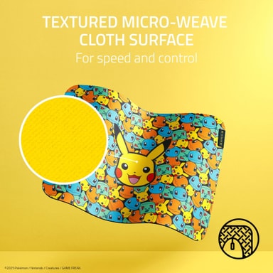 Razer Gigantus V2 M Pokémon Starters Edition-musmattan pryds av en livfull design med Pikachu och starter-Pokémon från Kanto, har en mikrovävd tygyta för hastighet och kontroll, samt en tjock antiglidande gummibas.Läs mer om produkten
