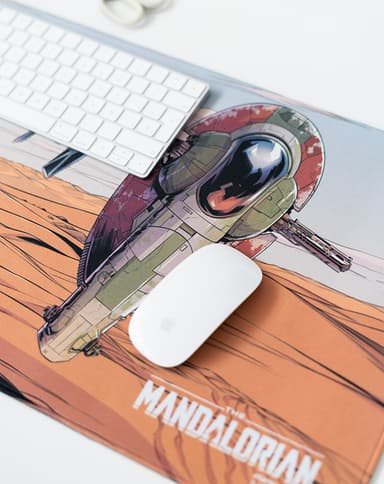 Star Wars Boba Fett XL musmatta har en textilyta med hög densitet. Den ger gott om utrymme för bekväm musrörelse, är vattentät och designad för hållbarhet med förstärkta kanter och en halkfri gummibas.Läs mer om produkten
