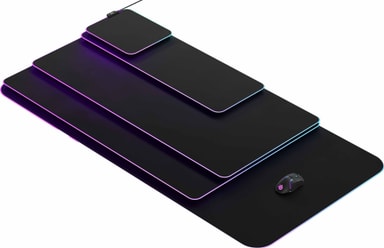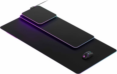 SteelSeries QcK Prism Cloth ETAIL-musmatta erbjuder gott om utrymme för exakta musrörelser. Den halkfria undersidan håller den på plats, och 2-zons RGB-belysning ger en stilren look till din setup.Läs mer om produkten