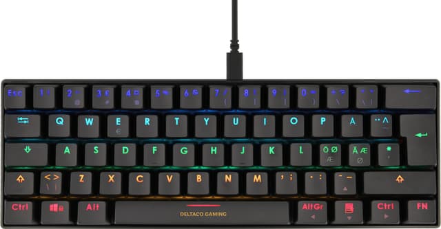 Tangentbordet har en elegant, kompakt design i svart med en utrymmesbesparande 60 % PAN-nordisk layout. Det kommer också med double injectiion-knappar.