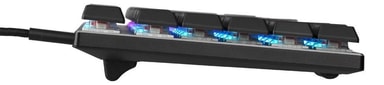 Mekaniskt TKL(ingen numpad) tangentbord med lågprofilstangenter, mekaniska brytare och en läcker RGB-belysning. Du behöver knappt trycka ner tangenterna för input vilket gör det lika skönt att skriva som att spela på detta tangentbord. RGB-belysningen kan styras med olika kombinationer med FN-tangenten. Välj mellan breathing, ""julgransbelysning"", fast belysning och många andra lägen. Tangentbordet är såklart utrustad med anti-ghosting och N-Key Rollover, layouten är 88-key ISO Nordic.