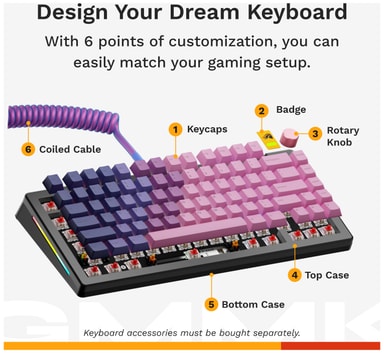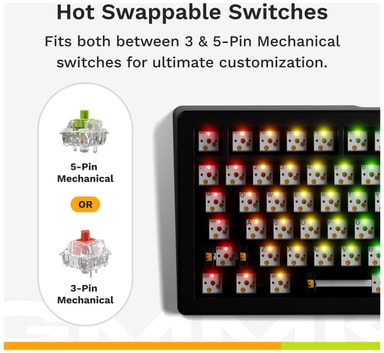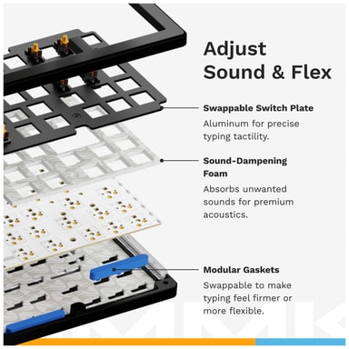 Tangentbordet har ett 75% format och flera modulära alternativ, vilket gör det enkelt att byta olika komponenter för att anpassa tangentbordets utseende, ljud och känsla efter dina önskemål. Du kan modifiera övre och undre hölje, tangenter, vred och emblem, switchplattor, packningar och kabel för en helt anpassad upplevelse. Tack vare dubbelt hot-swap-stöd på kretskortet kan du enkelt byta ut de medföljande Fox linjära switcharna mot antingen standard 3-pin eller 5-pin mekaniska switchar, vilket ger flexibilitet att anpassa switchtyper utan lödning. De medföljande double-shot PBT-tangenterna är hållbara och motståndskraftiga mot blekning och glans medan aluminiumplattan ger en balans mellan fasthet och flexibilitet. Den har också ett lager ljuddämpande skum som absorberar oönskad resonans och ger en renare ljudprofil. Kompatibel med Glorious MX switch-serien.
