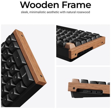 K4 HE SE har en kompakt 96%-layout som behåller nummertangentbordet i en utrymmesbesparande design. Special Edition har ett premium-utseende med en aluminiumram accentuerad av eleganta sidopaneler i naturlig rosenträ. Det inkluderar hållbara OSA-profil double-shot PBT-keycaps, silikonkuddar för tystare tangenttryckningar och ett akustiskt skumgummi för ett thocky-skrivljud.