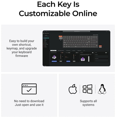 Tangentbordet erbjuder omfattande anpassningsmöjligheter genom QMK-firmware och Keychron Launcher-webbappen, vilket gör det möjligt att justera makron, aktiveringspunkter, tangentmappning, bakgrundsbelysning, layout, genvägar, tangentkombinationer, anpassa magnetiska switchar och olika andra inställningar.
