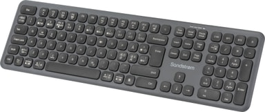 Sandstrøm Dual Mode trådlöst tangentbord i full storlek är utformat för att passa både Windows- och Mac-användare. Med sina dubbla anslutningsmöjligheter och enkla växlingsfunktion förbättrar får du en bekväm skrivupplevelse.