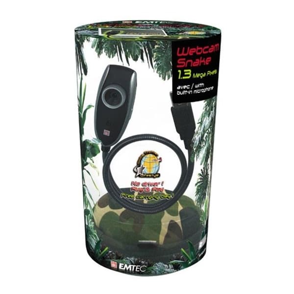 Emtec """"snake"""" webbkamera är en stilren webcam med exotisk design. Den originella och smarta designen hjälper dig att upptäcka stadsdjungeln och hålla kontakten med alla dina vänner. Kamerans kabel är flexibel vilket gör att du kan vrida och placera den i många olika positioner. Webbkameran behöver ingen drivrutin utan kopplas enkelt in med plug and play. Kameran har inbyggd mikrofon och fotofunktion.