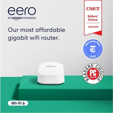 eero 6+ AX1000 WiFi 6-meshrouter levererar pålitlig 1Gbps hastighet med 160 MHz bandbredd och täcker 140 m2. TrueMesh-teknologin eliminerar döda zoner för att säkerställa stabil uppkoppling i alla rum.Läs mer om produkten
