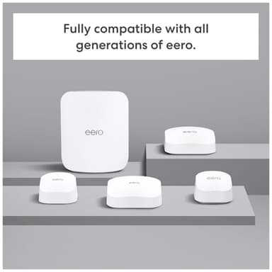 eero Pro 7 BE3900 WiFi 7-meshrouter levererar pålitlig 5 Gbps trådbunden hastighet och 3,9 Gbps trådlös hastighet med upp till 190 m2 täckning. TrueMesh-teknologin eliminerar döda zoner för att säkerställa stabil anslutning i alla rum.Läs mer om produkten