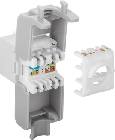 RJ45-uttag för installation i Keystone-patchpaneler, nätverksuttag och höljen