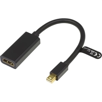 DELTACO Mini DisplayPort till HDMI adapter med ljud, 20-pin hane - 19-pin hona, svart, 0.2m Mini DisplayPort to HDMI adapter • 0.2m • Chipset: LT8611A • 4.96 Gb/s bandbredd • Stödjer Full HD - 1920x1080 i 60Hz