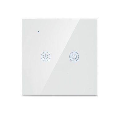 En 2-polig wifi-strömbrytare stilren modern design, med en yta av härdat glas som skyddar från repor. Gör den lättplacerad då den alltid smälter in i den befintliga inredningen vad gäller färg- och materialval i ditt hem.