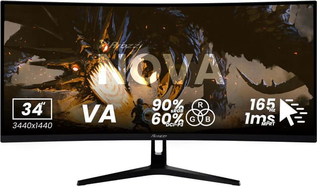 Arozzi Nova UWQHD | VA | 165 Hz | 34" gamingskärm har 1 ms svarstid, 165 Hz uppdateringsfrekvens, stöd för Adaptive Sync tillsammans med en 34" UWQHD VA-panel.Läs mer om produkten