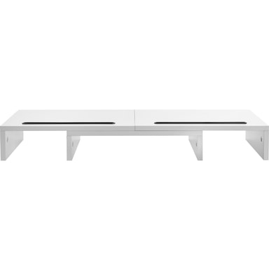 Samtidigt säkerställer skärmstället en överskådlig och strukturerad arbetsmiljö, eftersom det under podierna skapas extra förvaringsutrymme med plats för ditt tangentbord, mus och andra kontorsmaterial. Särskilt praktiska är de gummerade skårorna som fungerar som en stabil hållare för mobil eller surfplatta. Så har du alltid dina viktigaste tillbehör inom räckhåll och är redo för en produktiv dag.