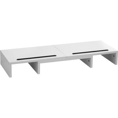 Skärmstativets två utdragbara sido-delarna är justerbara och tillåter flera olika uppställningsmöjligheter, så att du kan anpassa skärmarna optimalt till storleken på dina enheter eller ditt skrivbord. Så använder du din plats effektivt och tar ditt hemmakontor till en ny nivå.