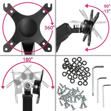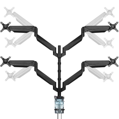 Älskar du multitasking och har oftast behov för flera skärmar? Då är detta skärmstativ med bordsfäste från tectake perfekt för dig! Denna stabila stativ med fyra höjdjusterbara armar i pulverlackerat stål, låter dig använda flera skärmar samtidigt. Med detta lutande, vridbara och roterande fäste kan du alltid behålla bästa möjliga vinkel för komfort och maximal produktivitet. Denna enkla, platsbesparande, lättinstallerade monitorarm har ett praktiskt kabelkanalsystem för att säkerställa ordning och reda. Denna är även perfekt för dig som älskar gaming!