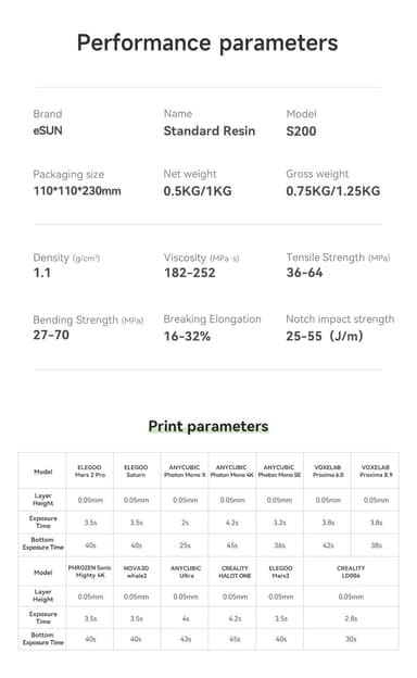 Standard Resin är ett kostnadseffektivt harts utvecklat av eSUN för vanliga konsumtionsscenarier. S200 Standard Resin är lätt att skriva ut och kan bilda tunna stöd.Läs mer om produkten