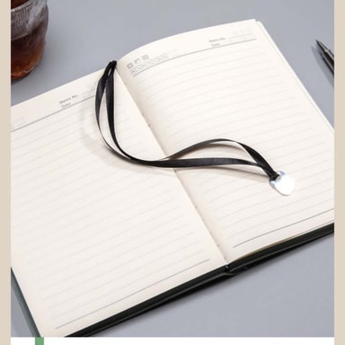 Elegant & funktionell design: Vår anteckningsbok har ett mjukt PU-läderomslag som ger en bekväm taktil känsla och skyddar sidorna inuti. Den medföljande pennhållaren håller ditt skrivinstrument lättillgängligt, medan metallbandets bokmärke låter dig snabbt navigera till specifika sidor. Den rundade ryggraden ger en touch av sofistikering. Anteckningsbokens bindning är noggrant utformad för att låta den ligga platt, vilket säkerställer en bekväm skrivupplevelse på alla ytor. Perfekt för användning hemma, på kontoret eller på språng, kombinerar den här anteckningsboken stil och praktiska egenskaper.