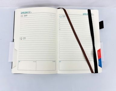 Elegant och praktisk: Denna A5-anteckningsbok har ett elegant svart omslag med säker remförslutning, vilket gör den idealisk för både professionellt och personligt bruk. Dess kompakta storlek gör den enkel att ta med sig, så att du kan ta den med dig vart du än går.