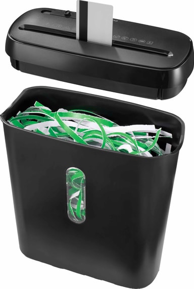 Dokumentförstöraren levereras med en 8-liters papperskorg med fönster, vilket gör det enkelt att se när den är full.