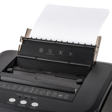 Ytterligare bekvämligheter inkluderar en 25-liters utdragbar papperskorg med ett visningsfönster, hjul för enkel förflyttning och LED-indikatorer för full behållare, överhettning och strömstatus. Dokumentförstöraren ger 60 minuters kontinuerlig dokumentförstöring i automatiskt läge, vilket garanterar tillförlitlig prestanda för alla dina behov av dokumentförstöring.
