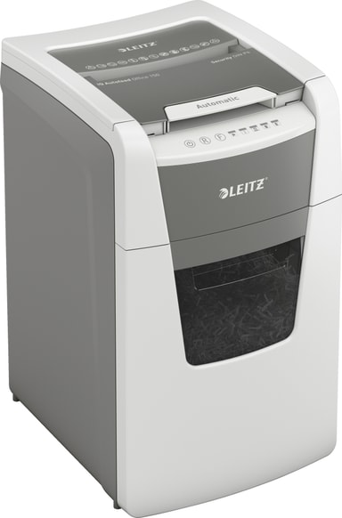 Tysta, effektiva Leitz IQ AutoFeed Office 150 P4 dokumentförstörare matar sig själv med upp till 150 pappersark automatiskt på en gång. I manuellt läge kan dokumentförstöraren strimla 8 ark samtidigt.Läs mer om produkten
