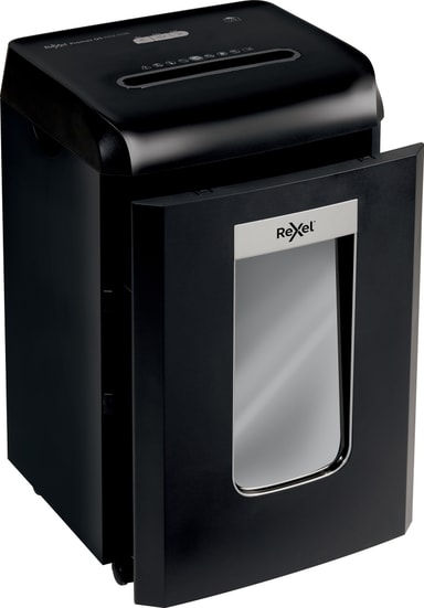 Rexel Promax QS RSX1538 Strip Cut dokumentförstörare strimlar gamla papper, filer, kreditkort, gem och även häftklamrar i 4x40 mm stora remsor och kastar sedan dem i en 38-litersbehållare.Läs mer om produkten