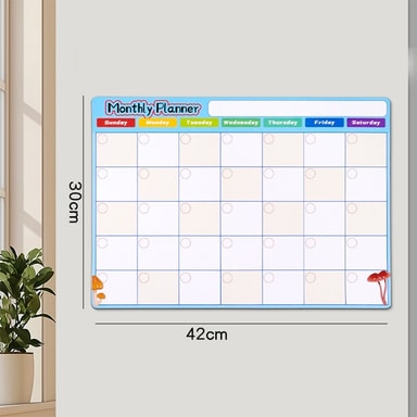 Organisera din månad enkelt: Denna magnetiska kylskåpskalender är perfekt för att planera din månad. Med sin tydliga layout och återanvändbara yta kan du enkelt skriva ner och ändra dina planer. Den är idealisk för familjer, studenter och alla som vill hålla koll på sina aktiviteter. Använd den för att schemalägga möten, komma ihåg viktiga datum eller planera måltider. Den magnetiska baksidan gör att den sitter säkert på kylskåpet eller andra magnetiska ytor, så du alltid har din kalender synlig och lättillgänglig.