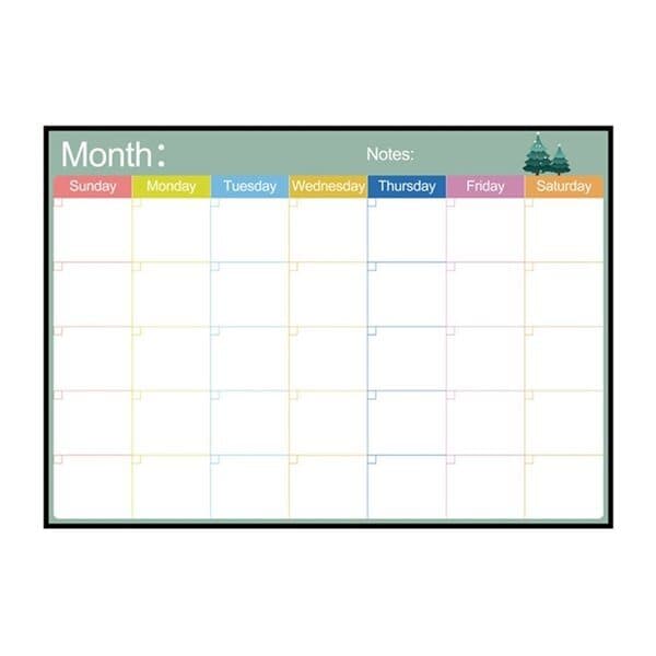 Magnetisk månadsplanerare / månadsschema i whiteboardmaterial som lätt kan torkas av och skrivas på om och om igen. Perfekt att sätta på kylskåpet eller annan yta som attraherar magneter. Material: magnetiskt gummi + PET Mått: 29,7 cm x 42 cm x 0,5 mm Obs! Endast whiteboard schema, suddare eller penna medföljer ej.
