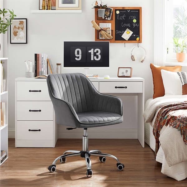 Elegant och bekväm arbetsstol i ljusgrå sammet för hem och kontor