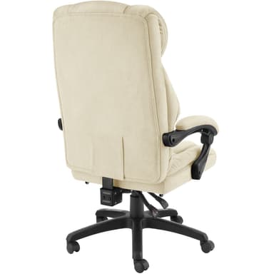 Förutom den tjocka stoppningen lovar kontorsstolens elegant böjda armstöd och det mysiga velouröverdraget en sittupplevelse i världsklass. Tack vare den högkvalitativa gasfjädern kan stolens höjd anpassas optimalt efter dina behov. Det solida fotkrysset med golvskonande dubbelhjul garanterar dessutom ett säkert grepp och gör stolen tyst och flexibel.
